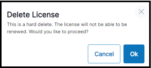 Expired Licenses will have a "Remove" button that appears on the right side of the screen next to the expired license. Clicking this will prompt the user to confirm if they would like to delete the license.