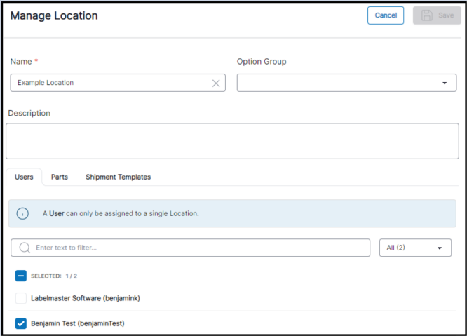 - (Optional) Select an "Option Group" to apply to all users in the location.