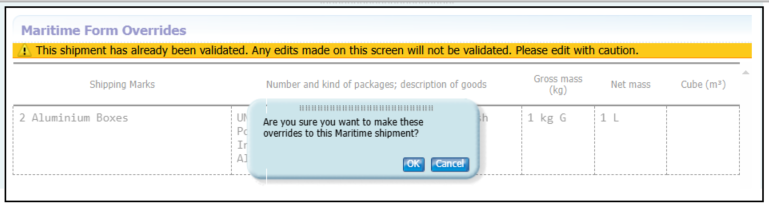 Note: The changes made to the form is applied to the current shipment only and cannot be saved and re-used for other shipments.