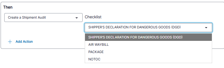 The Then Statement should have 'Create a Shipment Audit' selected.